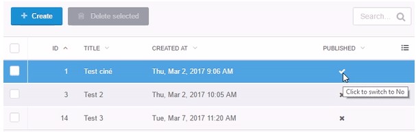 When working with datatables one may come across fields containing simple on/off or cheched/unchecked functionality. Although OrctoberCms backend list already contains a column type named switch, this one is display only without any functionality. This means whenever a status like on/off has to be changed for more than one record, it is necessary to open the records form, update and save, open the next record and so on.